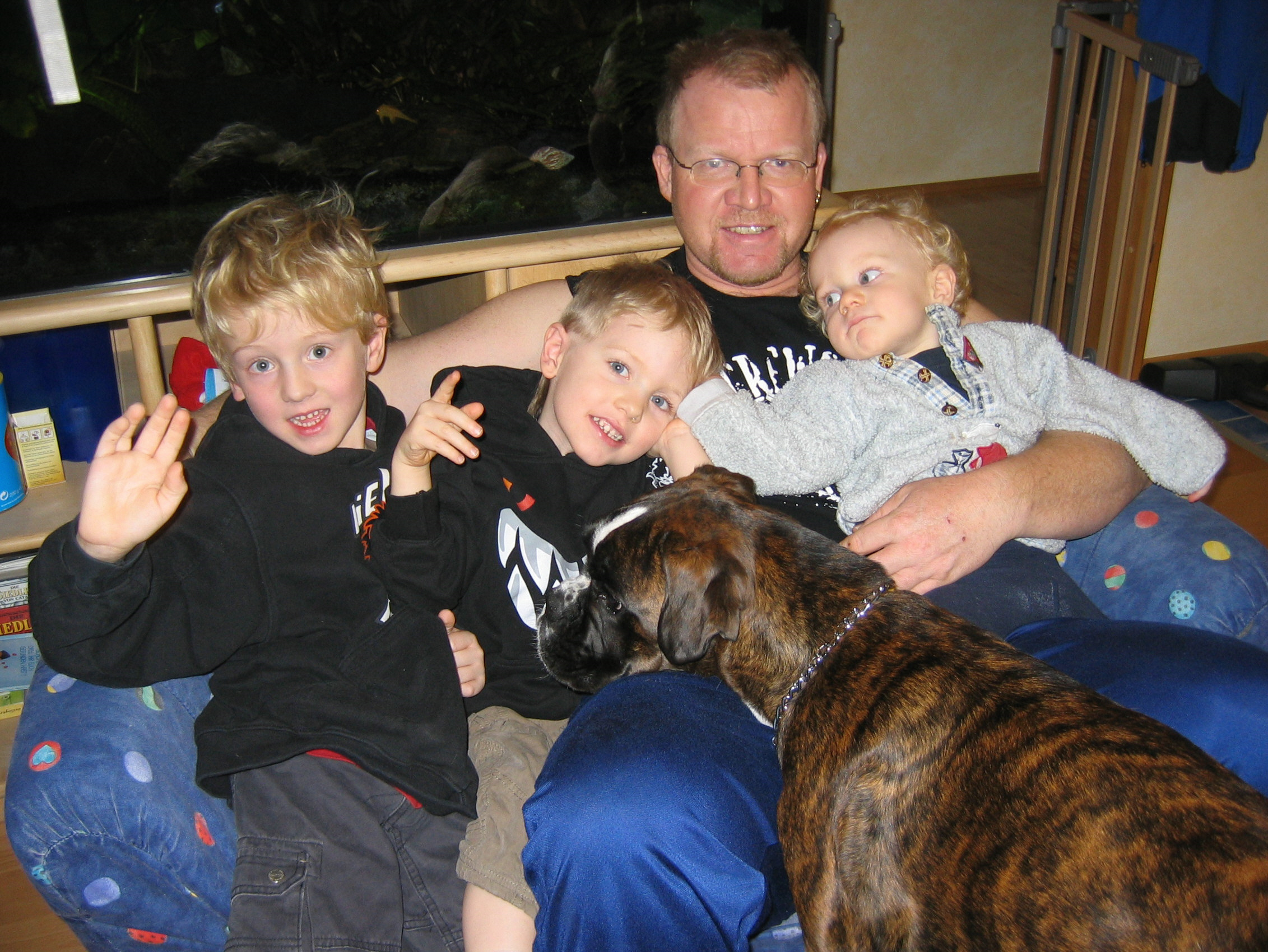 Als unser dritter Sohn geboren war, wollte mein Mann unbedingt einen eigenen Hund. Seine Eltern hatten immer Hunde. Ich war erst nicht so begeistert, und stellte gewisse Bedingungen: er sollte kurzes Fell haben und der Hund sollte regelmäßig in eine Hundeschule oder ähnliches gehen.